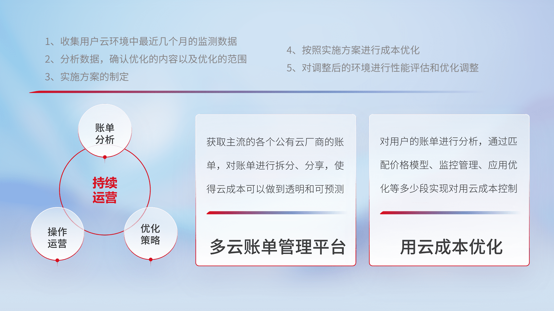 监控业务系统资源开销,,,对资源的消耗精确计量,,,,实现费用的透明化管理,,,不断提升资源使用率,,,,调整资源购买方式,,,降低资源费用成本,,用云成本可预测、、用云费用可优化,,云资源配额有据可依。。